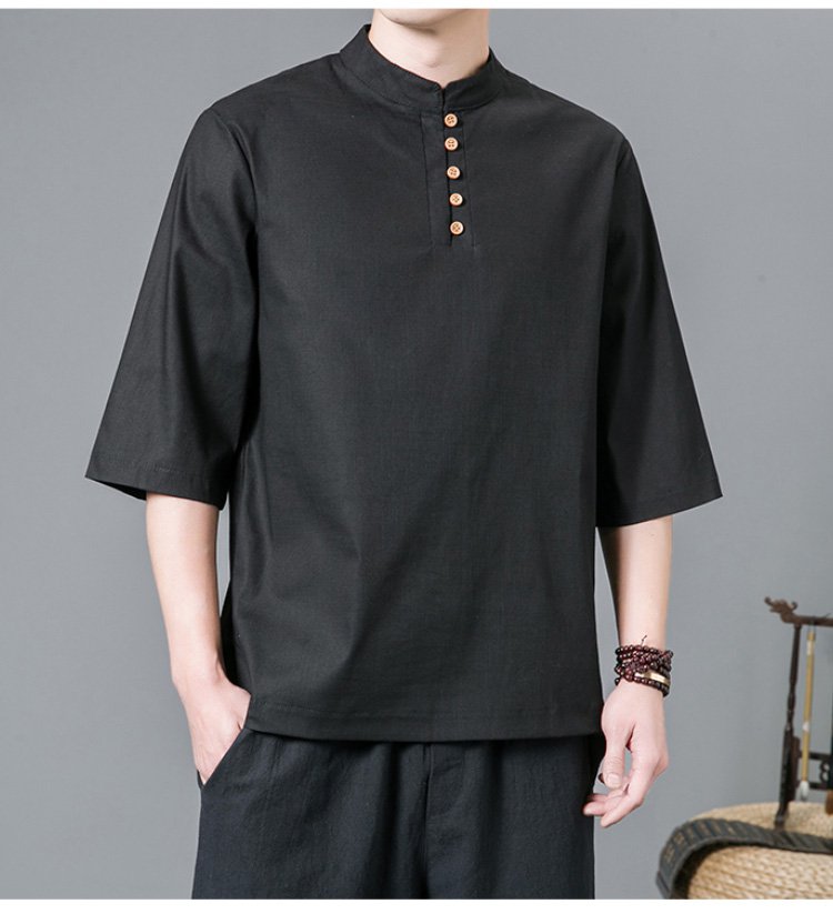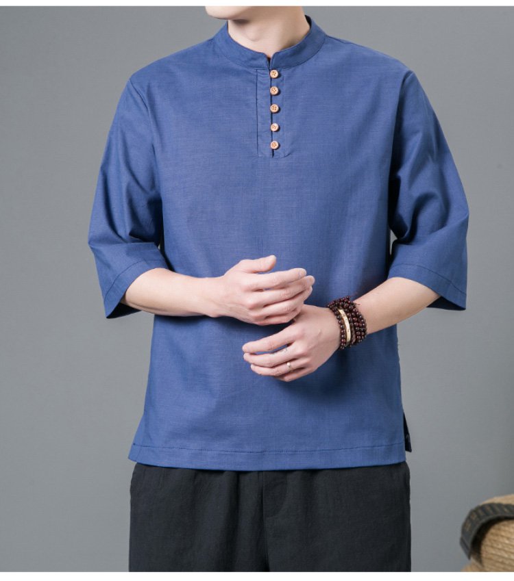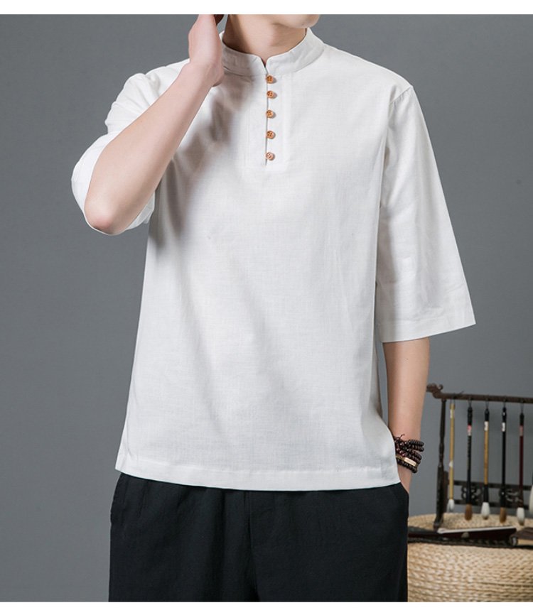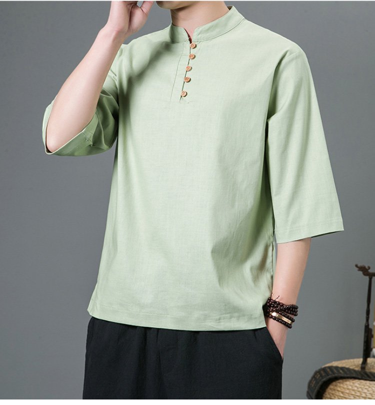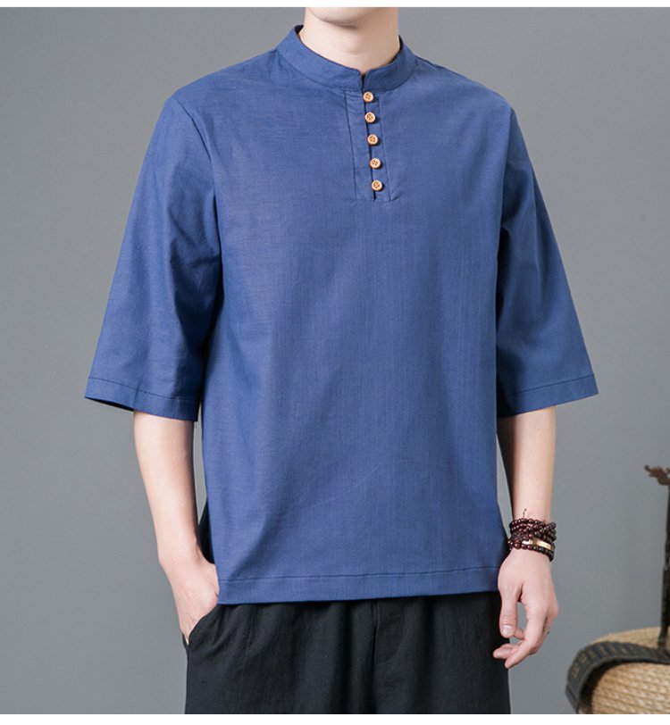 半袖綿麻シャツ